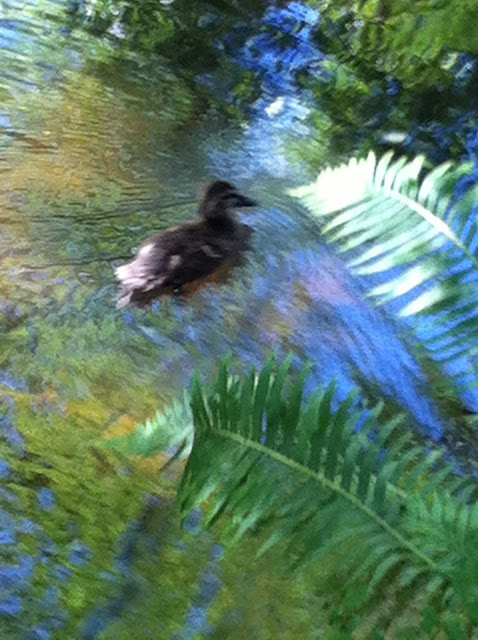 It is amazing how fast such a little ball of down and feathers can move. Also amazing are the colours the camera captures when the ripples rearrange the light filtering down through the trees.